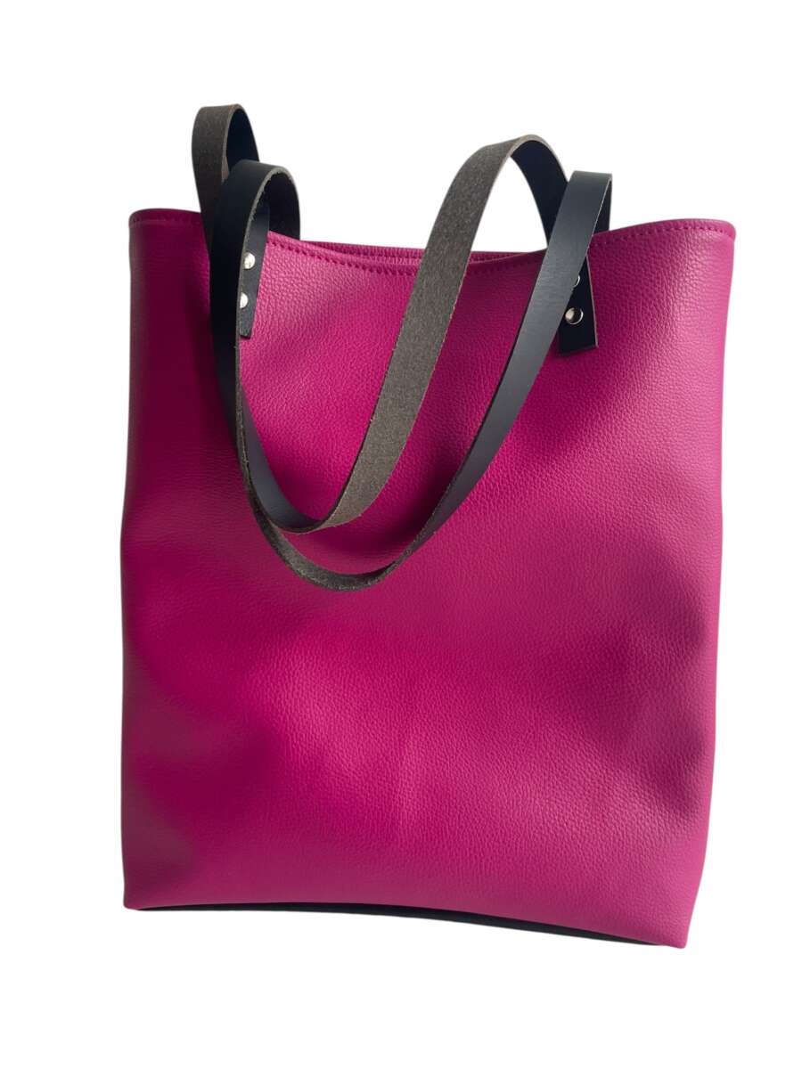 Tote bag structuré Ligne 6 noir et fushia